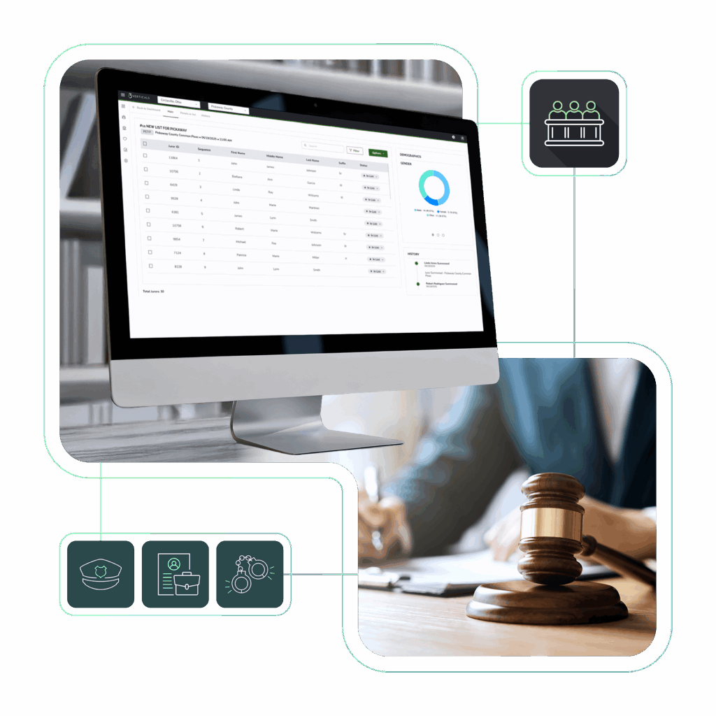 Random selection, interactive paneling, jury amendments, panel history, court date coordination, and more.